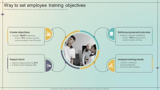This slide includes define purpose and outcome, analyze training needs, keep it short and create objectives. This Immersive Training For Practical Way To Set Employee Training Objectives DTE SS V from Slidegeeks makes it easy to present information on your topic with precision. It provides customization options, so you can make changes to the colors, design, graphics, or any other component to create a unique layout. It is also available for immediate download, so you can begin using it right away. Slidegeeks has done good research to ensure that you have everything you need to make your presentation stand out. Make a name out there for a brilliant performance. This slide includes define purpose and outcome, analyze training needs, keep it short and create objectives.