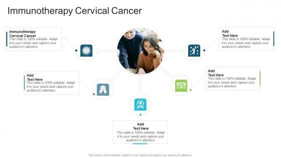 Introducing our well designed Immunotherapy Cervical Cancer In Powerpoint And Google Slides Cpb. This PowerPoint design presents information on topics like Immunotherapy Cervical Cancer. As it is predesigned it helps boost your confidence level. It also makes you a better presenter because of its high-quality content and graphics. This PPT layout can be downloaded and used in different formats like PDF, PNG, and JPG. Not only this, it is available in both Standard Screen and Widescreen aspect ratios for your convenience. Therefore, click on the download button now to persuade and impress your audience. Our Immunotherapy Cervical Cancer In Powerpoint And Google Slides Cpb are topically designed to provide an attractive backdrop to any subject. Use them to look like a presentation pro.