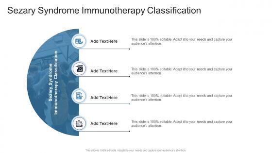 Presenting our innovatively designed set of slides titled Sezary Syndrome Immunotherapy Classification In Powerpoint And Google Slides Cpb This completely editable PowerPoint graphic exhibits Sezary Syndrome Immunotherapy Classification that will help you convey the message impactfully. It can be accessed with Google Slides and is available in both standard screen and widescreen aspect ratios. Apart from this, you can download this well structured PowerPoint template design in different formats like PDF, JPG, and PNG. So, click the download button now to gain full access to this PPT design. Our Sezary Syndrome Immunotherapy Classification In Powerpoint And Google Slides Cpb are topically designed to provide an attractive backdrop to any subject. Use them to look like a presentation pro.
