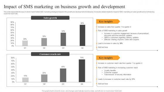 This slide represents the ways in which implemented SMS marketing strategies helped in the growth and development of enterprise. It includes details related to impact of SMS marketing on sales growth and on enhancing customer reach rate. Coming up with a presentation necessitates that the majority of the effort goes into the content and the message you intend to convey. The visuals of a PowerPoint presentation can only be effective if it supplements and supports the story that is being told. Keeping this in mind our experts created Impact Of SMS Marketing Business Text Message Advertising Solutions Enhancing Introduction Pdf to reduce the time that goes into designing the presentation. This way, you can concentrate on the message while our designers take care of providing you with the right template for the situation. This slide represents the ways in which implemented SMS marketing strategies helped in the growth and development of enterprise. It includes details related to impact of SMS marketing on sales growth and on enhancing customer reach rate.