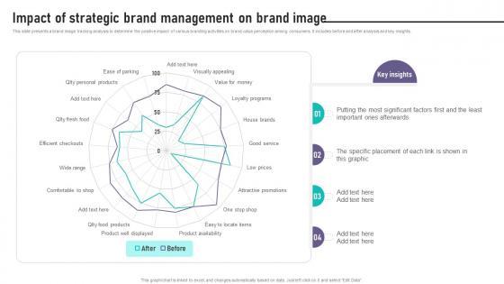 This slide presents a brand image tracking analysis to determine the positive impact of various branding activities on brand value perception among consumers. It includes before and after analysis and key insights. Slidegeeks has constructed Brand Equity Management To Raise Impact Of Strategic Brand Management On Brand after conducting extensive research and examination. These presentation templates are constantly being generated and modified based on user preferences and critiques from editors. Here, you will find the most attractive templates for a range of purposes while taking into account ratings and remarks from users regarding the content. This is an excellent jumping-off point to explore our content and will give new users an insight into our top-notch PowerPoint Templates. This slide presents a brand image tracking analysis to determine the positive impact of various branding activities on brand value perception among consumers. It includes before and after analysis and key insights.