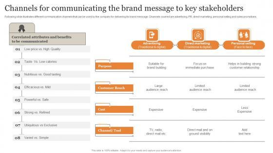 Following slide illustrates different communication channels that can be used by the company for delivering its brand message. Channels covered are advertising, PR, direct marketing, personal selling and sales promotions. Make sure to capture your audiences attention in your business displays with our gratis customizable Channels For Communicating The Brand Message Ultimate Guide Implementing Guidelines Pdf These are great for business strategies, office conferences, capital raising or task suggestions. If you desire to acquire more customers for your tech business and ensure they stay satisfied, create your own sales presentation with these plain slides. Following slide illustrates different communication channels that can be used by the company for delivering its brand message. Channels covered are advertising, PR, direct marketing, personal selling and sales promotions.