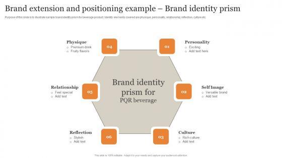 Purpose of this slide is to illustrate sample brand identity prism for beverage product. Identity elements covered are physique, personality, relationship, reflection, culture etc. Want to ace your presentation in front of a live audience Our Brand Extension And Positioning Example Brand Ultimate Guide Implementing Download Pdf can help you do that by engaging all the users towards you. Slidegeeks experts have put their efforts and expertise into creating these impeccable powerpoint presentations so that you can communicate your ideas clearly. Moreover, all the templates are customizable, and easy-to-edit and downloadable. Use these for both personal and commercial use. Purpose of this slide is to illustrate sample brand identity prism for beverage product. Identity elements covered are physique, personality, relationship, reflection, culture etc.
