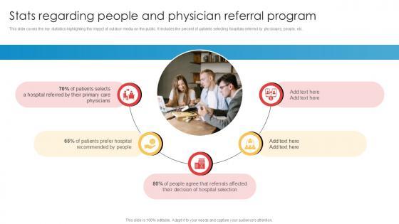 This slide covers the key statistics highlighting the impact of outdoor media on the public. It includes the percent of patients selecting hospitals referred by physicians, people, etc. Coming up with a presentation necessitates that the majority of the effort goes into the content and the message you intend to convey. The visuals of a PowerPoint presentation can only be effective if it supplements and supports the story that is being told. Keeping this in mind our experts created Stats Regarding People And Physician Referral Implementation Of Online Ppt Slides to reduce the time that goes into designing the presentation. This way, you can concentrate on the message while our designers take care of providing you with the right template for the situation. This slide covers the key statistics highlighting the impact of outdoor media on the public. It includes the percent of patients selecting hospitals referred by physicians, people, etc.