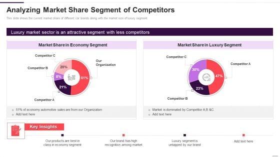 This slide shows the current market share of different car brands along with the market size of luxury segment. Deliver and pitch your topic in the best possible manner with this implementation plan for new product launch analyzing market share segment pictures pdf . Use them to share invaluable insights on sales, economy, organization, products and impress your audience. This template can be altered and modified as per your expectations. So, grab it now.