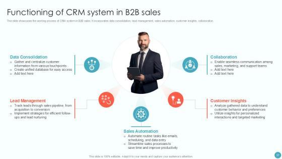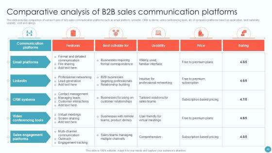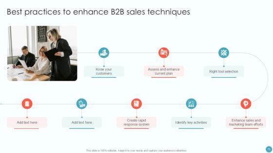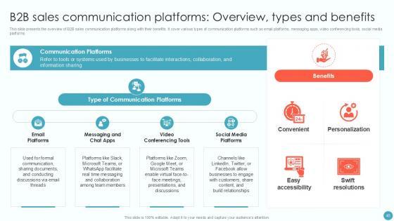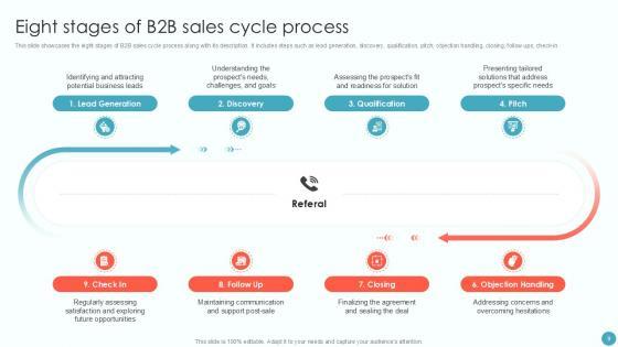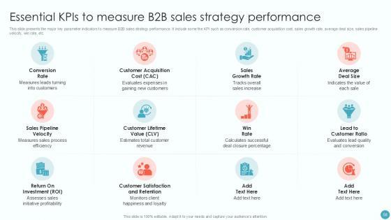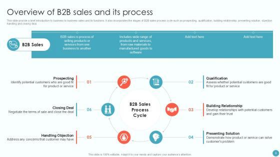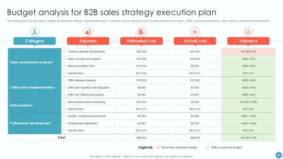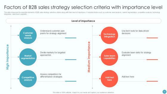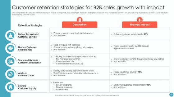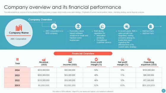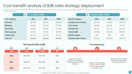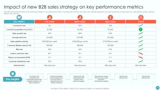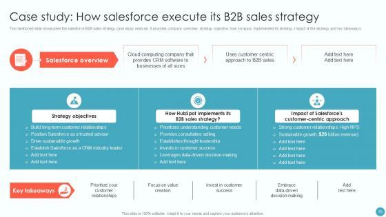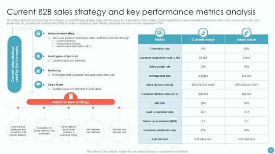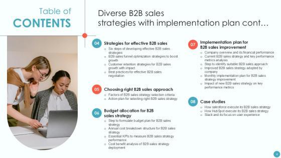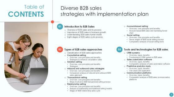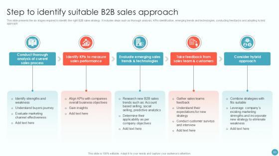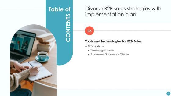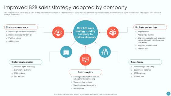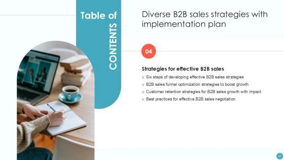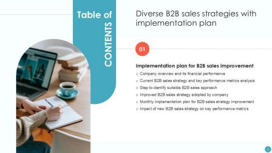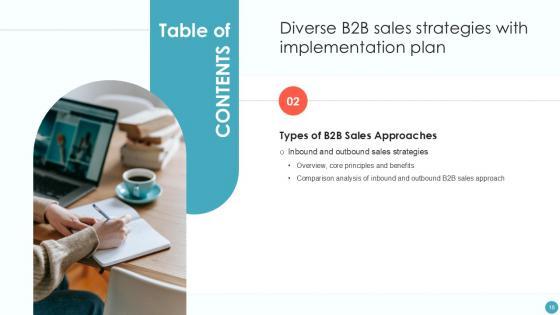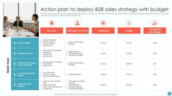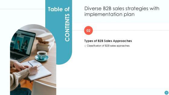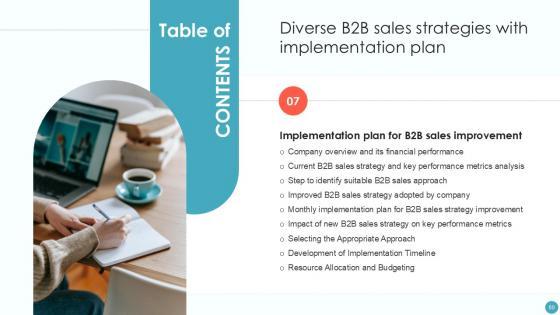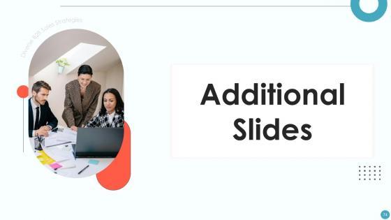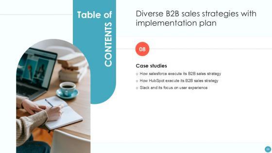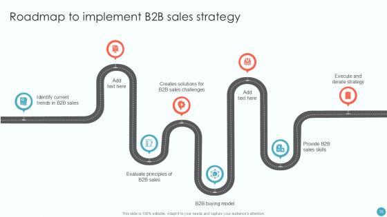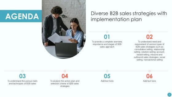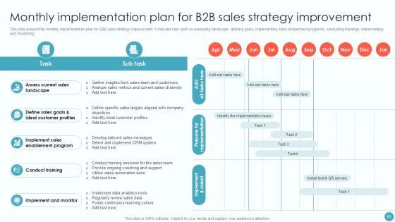 This Diverse B2B Sales Strategies With Implementation Plan Ppt Slide is designed to help you retain your audiences attention. This content-ready PowerPoint Template enables you to take your audience on a journey and share information in a way that is easier to recall. It helps you highlight the crucial parts of your work so that the audience does not get saddled with information download. This eighty one-slide PPT Deck comes prepared with the graphs and charts you could need to showcase your information through visuals. You only need to enter your own data in them. Download this editable PowerPoint Theme and walk into that meeting with confidence. Our Diverse B2B Sales Strategies With Implementation Plan Ppt Slide are topically designed to provide an attractive backdrop to any subject. Use them to look like a presentation pro.
