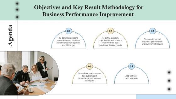 Find a pre-designed and impeccable Agenda Objectives And Key Result Methodology For Business Performance Improvement. The templates can ace your presentation without additional effort. You can download these easy-to-edit presentation templates to make your presentation stand out from others. So, what are you waiting for Download the template from Slidegeeks today and give a unique touch to your presentation. Our Agenda Objectives And Key Result Methodology For Business Performance Improvement are topically designed to provide an attractive backdrop to any subject. Use them to look like a presentation pro.