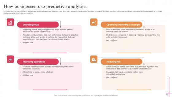 Use this Predictive Analytics For Improved Decision Making Ppt Powerpoint Presentation Complete Deck With Slides to ensure the business world gets to know you as a presentation expert with tremendous recall value. With its focus on providing the worlds best designs to highlight business ideas that have the potential to change the world, this PPT Template is sure to win you clients. The complete deck in seventeen three slides is a compendium of information, structured in a manner that provides the best framework for a presentation. Use this completely editable and customizable presentation to make an impact and improve your order book. Download now. Our Predictive Analytics For Improved Decision Making Ppt Powerpoint Presentation Complete Deck With Slides are topically designed to provide an attractive backdrop to any subject. Use them to look like a presentation pro.