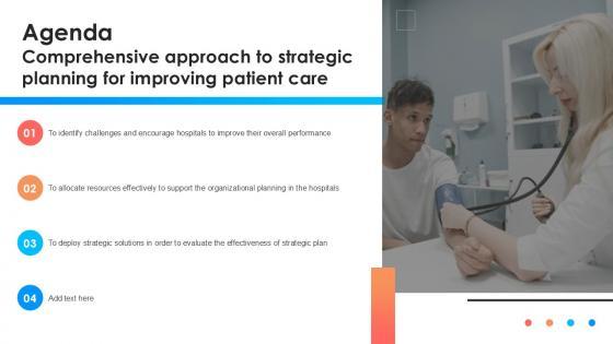 Find a pre-designed and impeccable Agenda Comprehensive Approach To Strategic Planning For Improving Patient Care Ppt Slide. The templates can ace your presentation without additional effort. You can download these easy-to-edit presentation templates to make your presentation stand out from others. So, what are you waiting for Download the template from Slidegeeks today and give a unique touch to your presentation. Our Agenda Comprehensive Approach To Strategic Planning For Improving Patient Care Ppt Slide are topically designed to provide an attractive backdrop to any subject. Use them to look like a presentation pro.