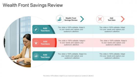 Introducing our well designed Wealth Front Savings Review In Powerpoint And Google Slides Cpb. This PowerPoint design presents information on topics like Wealth Front Savings Review. As it is predesigned it helps boost your confidence level. It also makes you a better presenter because of its high quality content and graphics. This PPT layout can be downloaded and used in different formats like PDF, PNG, and JPG. Not only this, it is available in both Standard Screen and Widescreen aspect ratios for your convenience. Therefore, click on the download button now to persuade and impress your audience. Our Wealth Front Savings Review In Powerpoint And Google Slides Cpb are topically designed to provide an attractive backdrop to any subject. Use them to look like a presentation pro.