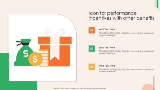 Persuade your audience using this Icon For Performance Incentives With Other Benefits Structure PDF. This PPT design covers three stages, thus making it a great tool to use. It also caters to a variety of topics including Performance Incentives, Other Benefits, Structure. Download this PPT design now to present a convincing pitch that not only emphasizes the topic but also showcases your presentation skills.