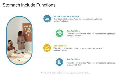 Introducing our well designed Stomach Include Functions In Powerpoint And Google Slides Cpb This PowerPoint design presents information on topics like Stomach Include Functions As it is predesigned it helps boost your confidence level. It also makes you a better presenter because of its high quality content and graphics. This PPT layout can be downloaded and used in different formats like PDF, PNG, and JPG. Not only this, it is available in both Standard Screen and Widescreen aspect ratios for your convenience. Therefore, click on the download button now to persuade and impress your audience. Our Stomach Include Functions In Powerpoint And Google Slides Cpb are topically designed to provide an attractive backdrop to any subject. Use them to look like a presentation pro.