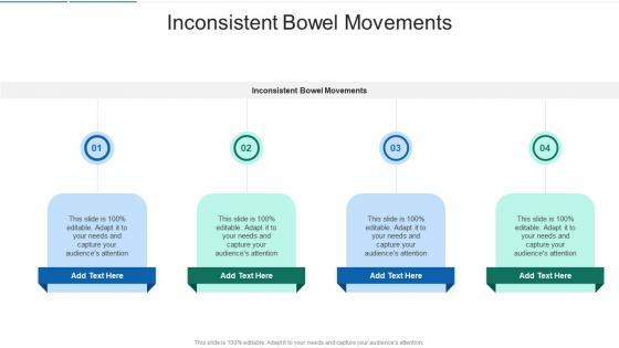 Introducing our well designed Inconsistent Bowel Movements In Powerpoint And Google Slides Cpb This PowerPoint design presents information on topics like Inconsistent Bowel Movements As it is predesigned it helps boost your confidence level. It also makes you a better presenter because of its high quality content and graphics. This PPT layout can be downloaded and used in different formats like PDF, PNG, and JPG. Not only this, it is available in both Standard Screen and Widescreen aspect ratios for your convenience. Therefore, click on the download button now to persuade and impress your audience. Our Inconsistent Bowel Movements In Powerpoint And Google Slides Cpb are topically designed to provide an attractive backdrop to any subject. Use them to look like a presentation pro.