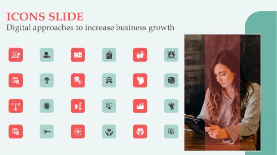 Introducing our well designed Icons Slide Digital Approaches To Increase Business Growth Infographics Pdf set of slides. The slide displays editable icons to enhance your visual presentation. The icons can be edited easily. So customize according to your business to achieve a creative edge. Download and share it with your audience. Our Icons Slide Digital Approaches To Increase Business Growth Infographics Pdf are topically designed to provide an attractive backdrop to any subject. Use them to look like a presentation pro.