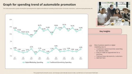 This slide represents a graph showing the spending trend for digital and traditional marketing of automobiles. It includes a test drive, customer buying decisions, etc. Whether you have daily or monthly meetings, a brilliant presentation is necessary. Graph For Spending Trend Of Automobile Promotional Strategies To Increase Download PDF can be your best option for delivering a presentation. Represent everything in detail using Graph For Spending Trend Of Automobile Promotional Strategies To Increase Download PDF and make yourself stand out in meetings. The template is versatile and follows a structure that will cater to your requirements. All the templates prepared by Slidegeeks are easy to download and edit. Our research experts have taken care of the corporate themes as well. So, give it a try and see the results. This slide represents a graph showing the spending trend for digital and traditional marketing of automobiles. It includes a test drive, customer buying decisions, etc.