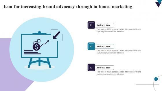Showcasing this set of slides titled Icon For Increasing Brand Advocacy Through In House Marketing Download Pdf. The topics addressed in these templates are Icon For Increasing Brand, Advocacy Through House Marketing. All the content presented in this PPT design is completely editable. Download it and make adjustments in color, background, font etc. as per your unique business setting. Our Icon For Increasing Brand Advocacy Through In House Marketing Download Pdf are topically designed to provide an attractive backdrop to any subject. Use them to look like a presentation pro.