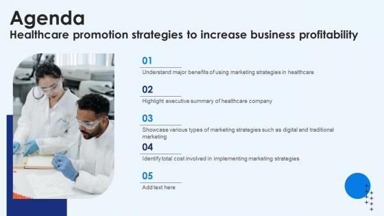Boost your pitch with our creative Agenda Healthcare Promotion Strategies To Increase Business Profitability Introduction Pdf. Deliver an awe-inspiring pitch that will mesmerize everyone. Using these presentation templates you will surely catch everyones attention. You can browse the ppts collection on our website. We have researchers who are experts at creating the right content for the templates. So you do not have to invest time in any additional work. Just grab the template now and use them. Our Agenda Healthcare Promotion Strategies To Increase Business Profitability Introduction Pdf are topically designed to provide an attractive backdrop to any subject. Use them to look like a presentation pro.