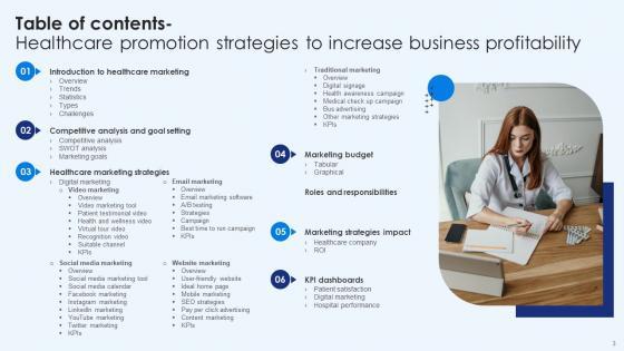 Want to ace your presentation in front of a live audience Our Table Of Contents Healthcare Promotion Strategies To Increase Business Profitability Brochure Pdf can help you do that by engaging all the users towards you. Slidegeeks experts have put their efforts and expertise into creating these impeccable powerpoint presentations so that you can communicate your ideas clearly. Moreover, all the templates are customizable, and easy-to-edit and downloadable. Use these for both personal and commercial use. Our Table Of Contents Healthcare Promotion Strategies To Increase Business Profitability Brochure Pdf are topically designed to provide an attractive backdrop to any subject. Use them to look like a presentation pro.