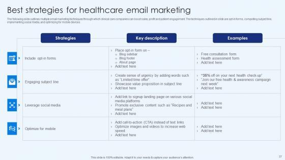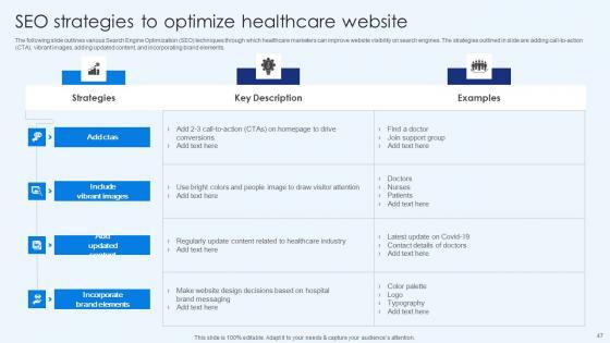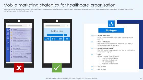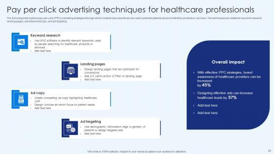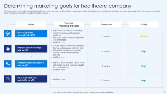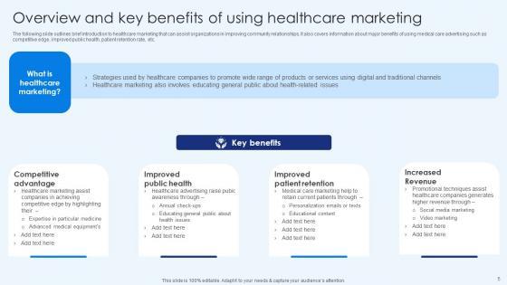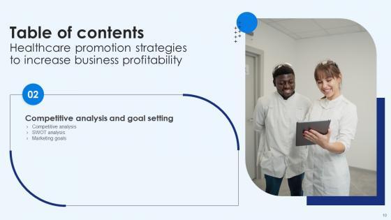 You will save yourself your energy and hours of time when you choose to use this impactful PowerPoint Deck. This Healthcare Promotion Strategies To Increase Business Profitability Complete Deck has been tailor-made to your business needs which ensures that you will always be prepared for that next meeting. Worry can not touch you when you present in your area of expertise using this PPT Template Bundle. With a modern design and easy to follow structure, this PowerPoint Presentation has seventy nine slides, which ensures that you can cover you need to without much work. Create your next presentation using this PPT Theme to deliver a memorable performance. Our Healthcare Promotion Strategies To Increase Business Profitability Complete Deck are topically designed to provide an attractive backdrop to any subject. Use them to look like a presentation pro.