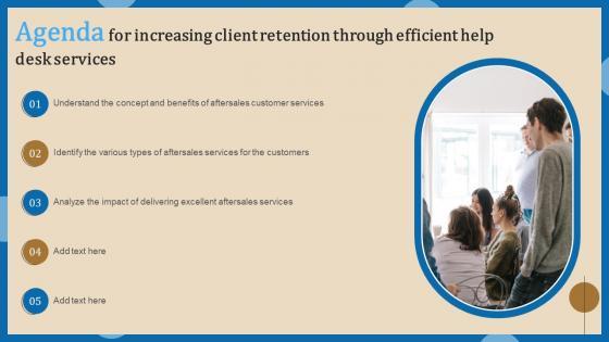Slidegeeks is one of the best resources for PowerPoint templates. You can download easily and regulate Agenda For Increasing Client Retention Through Efficient Help Desk Sample Pdf for your personal presentations from our wonderful collection. A few clicks is all it takes to discover and get the most relevant and appropriate templates. Use our Templates to add a unique zing and appeal to your presentation and meetings. All the slides are easy to edit and you can use them even for advertisement purposes. Our Agenda For Increasing Client Retention Through Efficient Help Desk Sample Pdf are topically designed to provide an attractive backdrop to any subject. Use them to look like a presentation pro.