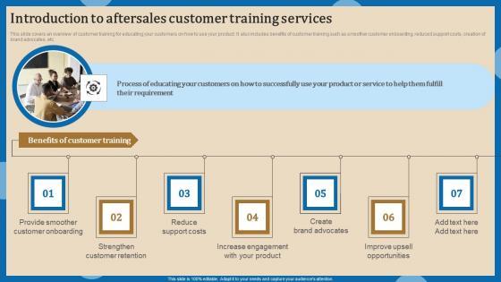 This slide covers an overview of customer training for educating your customers on how to use your product. It also includes benefits of customer training such as smoother customer onboarding, reduced support costs, creation of brand advocates, etc. This Introduction To Increasing Client Retention Through Efficient Inspiration Pdf is perfect for any presentation, be it in front of clients or colleagues. It is a versatile and stylish solution for organizing your meetings. The Introduction To Increasing Client Retention Through Efficient Inspiration Pdf features a modern design for your presentation meetings. The adjustable and customizable slides provide unlimited possibilities for acing up your presentation. Slidegeeks has done all the homework before launching the product for you. So, do not wait, grab the presentation templates today This slide covers an overview of customer training for educating your customers on how to use your product. It also includes benefits of customer training such as smoother customer onboarding, reduced support costs, creation of brand advocates, etc.