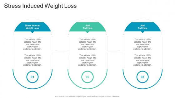 Introducing our well designed Stress Induced Weight Loss In Powerpoint And Google Slides Cpb. This PowerPoint design presents information on topics like Stress Induced Weight Loss. As it is predesigned it helps boost your confidence level. It also makes you a better presenter because of its high quality content and graphics. This PPT layout can be downloaded and used in different formats like PDF, PNG, and JPG. Not only this, it is available in both Standard Screen and Widescreen aspect ratios for your convenience. Therefore, click on the download button now to persuade and impress your audience. Our Stress Induced Weight Loss In Powerpoint And Google Slides Cpb are topically designed to provide an attractive backdrop to any subject. Use them to look like a presentation pro.