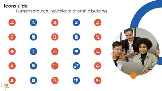 Want to ace your presentation in front of a live audience Our Icons Slide Human Resource Industrial Relationship Building can help you do that by engaging all the users towards you. Slidegeeks experts have put their efforts and expertise into creating these impeccable powerpoint presentations so that you can communicate your ideas clearly. Moreover, all the templates are customizable, and easy-to-edit and downloadable. Use these for both personal and commercial use. Our Icons Slide Human Resource Industrial Relationship Building are topically designed to provide an attractive backdrop to any subject. Use them to look like a presentation pro.