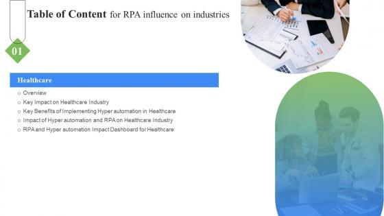 Slidegeeks is one of the best resources for PowerPoint templates. You can download easily and regulate Table Of Content For RPA Influence On Industries Portrait Pdf for your personal presentations from our wonderful collection. A few clicks is all it takes to discover and get the most relevant and appropriate templates. Use our Templates to add a unique zing and appeal to your presentation and meetings. All the slides are easy to edit and you can use them even for advertisement purposes. Our Table Of Content For RPA Influence On Industries Portrait Pdf are topically designed to provide an attractive backdrop to any subject. Use them to look like a presentation pro.