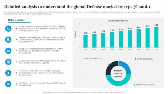 The slide examines the attributes on the basis of different types in the Defense industry. It capture the information related to digitalization change in the industry. It includes information related to market size as well as industry segmentation on the basis of small, medium and large industry size. Slidegeeks is here to make your presentations a breeze with Detailed Analysis To Understand The Global Global Security Industry PPT PowerPoint IR SS V With our easy-to-use and customizable templates, you can focus on delivering your ideas rather than worrying about formatting. With a variety of designs to choose from, you are sure to find one that suits your needs. And with animations and unique photos, illustrations, and fonts, you can make your presentation pop. So whether you are giving a sales pitch or presenting to the board, make sure to check out Slidegeeks first The slide examines the attributes on the basis of different types in the Defense industry. It capture the information related to digitalization change in the industry. It includes information related to market size as well as industry segmentation on the basis of small, medium and large industry size.