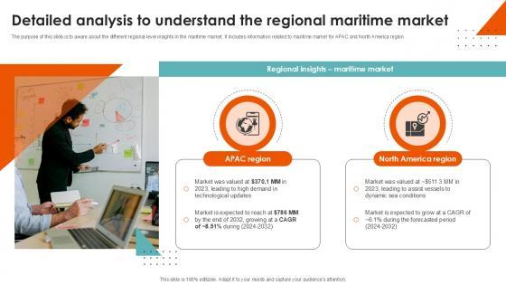 The purpose of this slide is to aware about the different regional level insights in the maritime market. It includes information related to maritime market for APAC and North America region.From laying roadmaps to briefing everything in detail, our templates are perfect for you. You can set the stage with your presentation slides. All you have to do is download these easy to edit and customizable templates. Detailed Analysis To Understand The Port Terminal Industry Ppt Example will help you deliver an outstanding performance that everyone would remember and praise you for. Do download this presentation today. The purpose of this slide is to aware about the different regional level insights in the maritime market. It includes information related to maritime market for APAC and North America region.