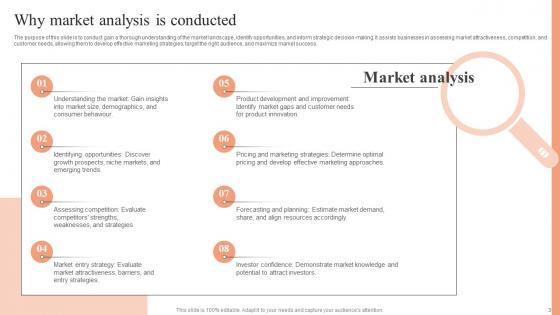 The purpose of this slide is to conduct gain a thorough understanding of the market landscape, identify opportunities, and inform strategic decision-making. It assists businesses in assessing market attractiveness, competition, and customer needs, allowing them to develop effective marketing strategies, target the right audience, and maximize market success. There are so many reasons you need a Industry Synopsis Market Analysis Why Market Analysis Is Conducted Introduction Pdf. The first reason is you can not spend time making everything from scratch, Thus, Slidegeeks has made presentation templates for you too. You can easily download these templates from our website easily. The purpose of this slide is to conduct gain a thorough understanding of the market landscape, identify opportunities, and inform strategic decision-making. It assists businesses in assessing market attractiveness, competition, and customer needs, allowing them to develop effective marketing strategies, target the right audience, and maximize market success.