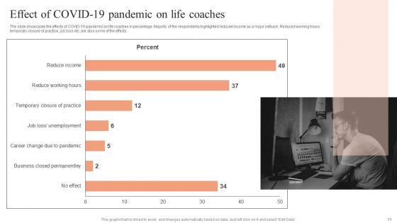 The slide showcases the effects of COVID-19 pandemic on life coaches in percentage. Majority of the respondents highlighted reduced income as a major setback. Reduced working hours, temporary closure of practice, job loss etc. are also some of the effects. Create an editable Industry Synopsis Market Analysis Effect Of Covid 19 Pandemic On Life Coaches Introduction Pdf that communicates your idea and engages your audience. Whether you are presenting a business or an educational presentation, pre-designed presentation templates help save time. Industry Synopsis Market Analysis Effect Of Covid 19 Pandemic On Life Coaches Introduction Pdf is highly customizable and very easy to edit, covering many different styles from creative to business presentations. Slidegeeks has creative team members who have crafted amazing templates. So, go and get them without any delay. The slide showcases the effects of COVID-19 pandemic on life coaches in percentage. Majority of the respondents highlighted reduced income as a major setback. Reduced working hours, temporary closure of practice, job loss etc. are also some of the effects.