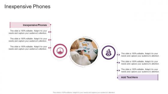 Introducing our well-designed Inexpensive Phones In Powerpoint And Google Slides Cpb. This PowerPoint design presents information on topics like Inexpensive Phones. As it is predesigned it helps boost your confidence level. It also makes you a better presenter because of its high-quality content and graphics. This PPT layout can be downloaded and used in different formats like PDF, PNG, and JPG. Not only this, it is available in both Standard Screen and Widescreen aspect ratios for your convenience. Therefore, click on the download button now to persuade and impress your audience. Our Inexpensive Phones In Powerpoint And Google Slides Cpb are topically designed to provide an attractive backdrop to any subject. Use them to look like a presentation pro.