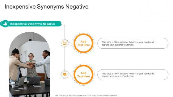 Presenting our innovatively-designed set of slides titled Inexpensive Synonyms Negative In Powerpoint And Google Slides Cpb. This completely editable PowerPoint graphic exhibits Inexpensive Synonyms Negative that will help you convey the message impactfully. It can be accessed with Google Slides and is available in both standard screen and widescreen aspect ratios. Apart from this, you can download this well-structured PowerPoint template design in different formats like PDF, JPG, and PNG. So, click the download button now to gain full access to this PPT design. Our Inexpensive Synonyms Negative In Powerpoint And Google Slides Cpb are topically designed to provide an attractive backdrop to any subject. Use them to look like a presentation pro.