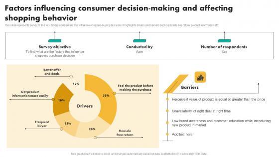 This slide represents survey to find key drivers and barriers that influence shoppers buying decisions. It highlights drivers and barriers such as hassle free return, product information etc. Do you have to make sure that everyone on your team knows about any specific topic I yes, then you should give Factors Influencing Consumer Decision Making Optimizing Customer Purchase Experience By Executi Rules PDF a try. Our experts have put a lot of knowledge and effort into creating this impeccable Factors Influencing Consumer Decision Making Optimizing Customer Purchase Experience By Executi Rules PDF. You can use this template for your upcoming presentations, as the slides are perfect to represent even the tiniest detail. You can download these templates from the Slidegeeks website and these are easy to edit. So grab these today