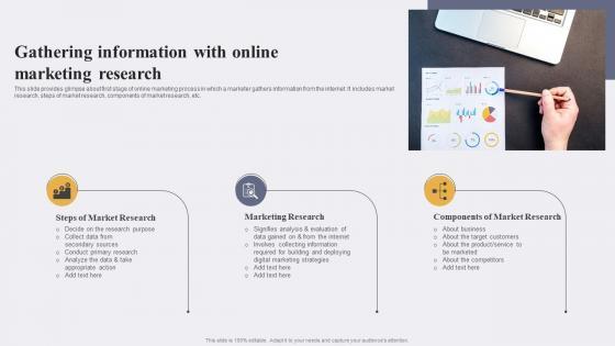 This slide provides glimpse about first stage of online marketing process in which a marketer gathers information from the internet. It includes market research, steps of market research, components of market research, etc.Find highly impressive Gathering Information With Online Enhancing Conversion Rate By Leveraging Introduction Pdf on Slidegeeks to deliver a meaningful presentation. You can save an ample amount of time using these presentation templates. No need to worry to prepare everything from scratch because Slidegeeks experts have already done a huge research and work for you. You need to download Gathering Information With Online Enhancing Conversion Rate By Leveraging Introduction Pdf for your upcoming presentation. All the presentation templates are 100Precent editable and you can change the color and personalize the content accordingly. Download now. This slide provides glimpse about first stage of online marketing process in which a marketer gathers information from the internet. It includes market research, steps of market research, components of market research, etc.