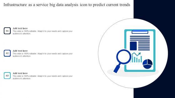 Showcasing this set of slides titled Infrastructure As A Service Big Data Analysis Icon To Predict Current Trends Clipart Pdf. The topics addressed in these templates are Infrastructure As Service, Big Data Analysis, Icon To Predict, Current Trends. All the content presented in this PPT design is completely editable. Download it and make adjustments in color, background, font etc. as per your unique business setting. Our Infrastructure As A Service Big Data Analysis Icon To Predict Current Trends Clipart Pdf are topically designed to provide an attractive backdrop to any subject. Use them to look like a presentation pro.
