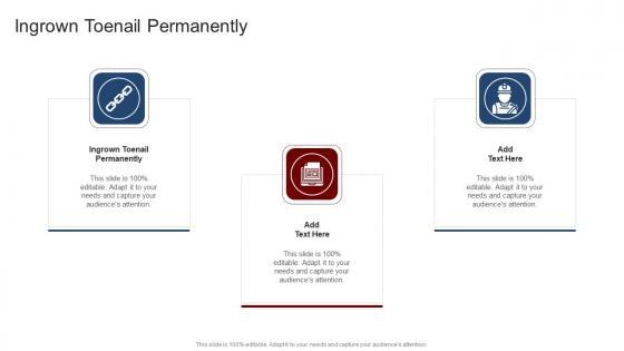 Presenting our innovatively designed set of slides titled Ingrown Toenail Permanently In Powerpoint And Google Slides Cpb. This completely editable PowerPoint graphic exhibits Ingrown Toenail Permanently that will help you convey the message impactfully. It can be accessed with Google Slides and is available in both standard screen and widescreen aspect ratios. Apart from this, you can download this well structured PowerPoint template design in different formats like PDF, JPG, and PNG. So, click the download button now to gain full access to this PPT design. Our Ingrown Toenail Permanently In Powerpoint And Google Slides Cpb are topically designed to provide an attractive backdrop to any subject. Use them to look like a presentation pro.
