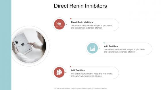 Presenting our innovatively designed set of slides titled Direct Renin Inhibitors In Powerpoint And Google Slides Cpb This completely editable PowerPoint graphic exhibits Direct Renin Inhibitors that will help you convey the message impactfully. It can be accessed with Google Slides and is available in both standard screen and widescreen aspect ratios. Apart from this, you can download this well structured PowerPoint template design in different formats like PDF, JPG, and PNG. So, click the download button now to gain full access to this PPT design. Our Direct Renin Inhibitors In Powerpoint And Google Slides Cpb are topically designed to provide an attractive backdrop to any subject. Use them to look like a presentation pro.