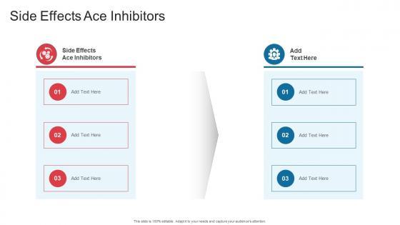 Introducing our well designed Side Effects Ace Inhibitors In Powerpoint And Google Slides Cpb. This PowerPoint design presents information on topics like Side Effects Ace Inhibitors. As it is predesigned it helps boost your confidence level. It also makes you a better presenter because of its high quality content and graphics. This PPT layout can be downloaded and used in different formats like PDF, PNG, and JPG. Not only this, it is available in both Standard Screen and Widescreen aspect ratios for your convenience. Therefore, click on the download button now to persuade and impress your audience. Our Side Effects Ace Inhibitors In Powerpoint And Google Slides Cpb are topically designed to provide an attractive backdrop to any subject. Use them to look like a presentation pro.