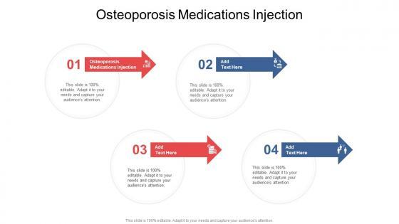 Introducing our well designed Osteoporosis Medications Injection In Powerpoint And Google Slides Cpb. This PowerPoint design presents information on topics like Osteoporosis Medications Injection. As it is predesigned it helps boost your confidence level. It also makes you a better presenter because of its high quality content and graphics. This PPT layout can be downloaded and used in different formats like PDF, PNG, and JPG. Not only this, it is available in both Standard Screen and Widescreen aspect ratios for your convenience. Therefore, click on the download button now to persuade and impress your audience. Our Osteoporosis Medications Injection In Powerpoint And Google Slides Cpb are topically designed to provide an attractive backdrop to any subject. Use them to look like a presentation pro.