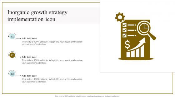 Pitch your topic with ease and precision using this Inorganic Growth Strategy Implementation Icon Mockup Pdf. This layout presents information on Inorganic Growth, Strategy, Implementation. It is also available for immediate download and adjustment. So, changes can be made in the color, design, graphics or any other component to create a unique layout. Our Inorganic Growth Strategy Implementation Icon Mockup Pdf are topically designed to provide an attractive backdrop to any subject. Use them to look like a presentation pro.