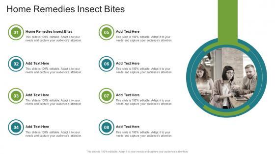 Introducing our well designed Home Remedies Insect Bites In Powerpoint And Google Slides Cpb. This PowerPoint design presents information on topics like Home Remedies Insect Bites. As it is predesigned it helps boost your confidence level. It also makes you a better presenter because of its high quality content and graphics. This PPT layout can be downloaded and used in different formats like PDF, PNG, and JPG. Not only this, it is available in both Standard Screen and Widescreen aspect ratios for your convenience. Therefore, click on the download button now to persuade and impress your audience. Our Home Remedies Insect Bites In Powerpoint And Google Slides Cpb are topically designed to provide an attractive backdrop to any subject. Use them to look like a presentation pro.