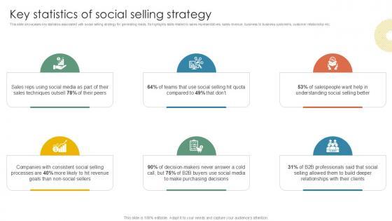 This slide showcases key statistics associated with social selling strategy for generating leads. Its highlights stats related to sales representatives, sales revenue, business to business customers, customer relationship etc. This Key Statistics Of Social Selling Strategy Inside Vs Outside Sales PPT Slide Strategy SS V is perfect for any presentation, be it in front of clients or colleagues. It is a versatile and stylish solution for organizing your meetings. The Key Statistics Of Social Selling Strategy Inside Vs Outside Sales PPT Slide Strategy SS V features a modern design for your presentation meetings. The adjustable and customizable slides provide unlimited possibilities for acing up your presentation. Slidegeeks has done all the homework before launching the product for you. So, do not wait, grab the presentation templates today This slide showcases key statistics associated with social selling strategy for generating leads. Its highlights stats related to sales representatives, sales revenue, business to business customers, customer relationship etc.