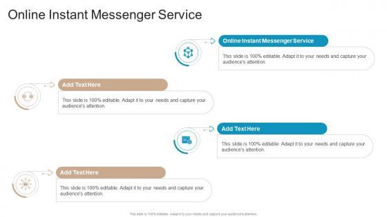 Presenting our innovatively-designed set of slides titled Online Instant Messenger Service In Powerpoint And Google Slides Cpb. This completely editable PowerPoint graphic exhibits Online Instant Messenger Service that will help you convey the message impactfully. It can be accessed with Google Slides and is available in both standard screen and widescreen aspect ratios. Apart from this, you can download this well-structured PowerPoint template design in different formats like PDF, JPG, and PNG. So, click the download button now to gain full access to this PPT design. Our Online Instant Messenger Service In Powerpoint And Google Slides Cpb are topically designed to provide an attractive backdrop to any subject. Use them to look like a presentation pro.