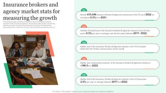 This slide provides a glimpse of insurance broker and agency industry overview in the insurance business. The purpose of this slide is concerning with the overview of automobile insurance, its growth, demand and its forecasting in the market, the success rate and enhancement of business. Crafting an eye-catching presentation has never been more straightforward. Let your presentation shine with this tasteful yet straightforward Insurance Brokers And Agency Market Stats For Insurance Business Plan Background Pdf template. It offers a minimalistic and classy look that is great for making a statement. The colors have been employed intelligently to add a bit of playfulness while still remaining professional. Construct the ideal Insurance Brokers And Agency Market Stats For Insurance Business Plan Background Pdf that effortlessly grabs the attention of your audience Begin now and be certain to wow your customers This slide provides a glimpse of insurance broker and agency industry overview in the insurance business. The purpose of this slide is concerning with the overview of automobile insurance, its growth, demand and its forecasting in the market, the success rate and enhancement of business.