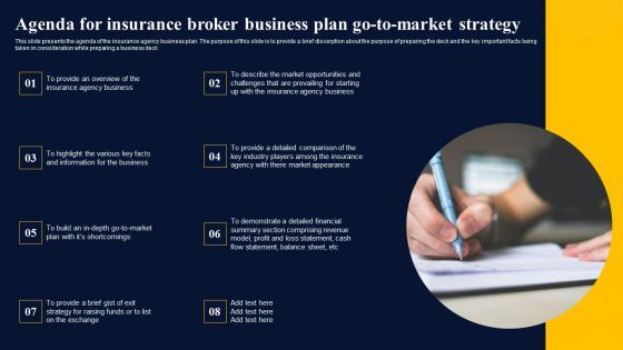 Find a pre-designed and impeccable Agenda For Insurance Broker Business Plan Go To Market Strategy Inspiration Pdf The templates can ace your presentation without additional effort. You can download these easy-to-edit presentation templates to make your presentation stand out from others. So, what are you waiting for Download the template from Slidegeeks today and give a unique touch to your presentation. Our Agenda For Insurance Broker Business Plan Go To Market Strategy Inspiration Pdf are topically designed to provide an attractive backdrop to any subject. Use them to look like a presentation pro.