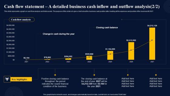 This slide represents the businesss historical and forecasted cash flow results and the amount of cash the business will introduce to starts its operations. The slide is presented to know the business cash performance, weather the business is heaving a positive cash balance and meeting all the obligations or not.Want to ace your presentation in front of a live audience Our Cash Flow Statement A Detailed Business Insurance Broker Business Plan Sample Pdf can help you do that by engaging all the users towards you.. Slidegeeks experts have put their efforts and expertise into creating these impeccable powerpoint presentations so that you can communicate your ideas clearly. Moreover, all the templates are customizable, and easy-to-edit and downloadable. Use these for both personal and commercial use. This slide represents the businesss historical and forecasted cash flow results and the amount of cash the business will introduce to starts its operations. The slide is presented to know the business cash performance, weather the business is heaving a positive cash balance and meeting all the obligations or not.
