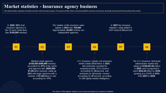 This slide provides a glimpse of industry overview of the insurance agency. The purpose of this slide is concerning with the overview of insurance, its growth, demand and its forecasting in the market.Welcome to our selection of the Market Statistics Insurance Agency Business Insurance Broker Business Plan Brochure Pdf These are designed to help you showcase your creativity and bring your sphere to life. Planning and Innovation are essential for any business that is just starting out. This collection contains the designs that you need for your everyday presentations. All of our PowerPoints are 100Precent editable, so you can customize them to suit your needs. This multi-purpose template can be used in various situations. Grab these presentation templates today. This slide provides a glimpse of industry overview of the insurance agency. The purpose of this slide is concerning with the overview of insurance, its growth, demand and its forecasting in the market.