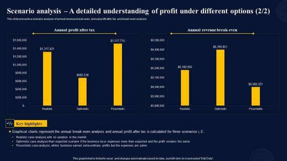 This slide represents the different scenarios for deriving final annual profit after tax on the basis of realistic case analysis, optimistic case analysis and pessimistic case analysis.Take your projects to the next level with our ultimate collection of Scenario Analysis A Detailed Understanding Of Insurance Broker Business Plan Demonstration Pdf Slidegeeks has designed a range of layouts that are perfect for representing task or activity duration, keeping track of all your deadlines at a glance. Tailor these designs to your exact needs and give them a truly corporate look with your own brand colors they all make your projects stand out from the rest. This slide represents the different scenarios for deriving final annual profit after tax on the basis of realistic case analysis, optimistic case analysis and pessimistic case analysis.